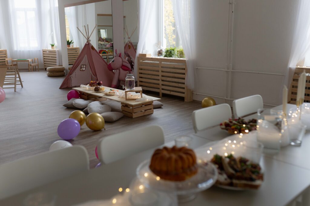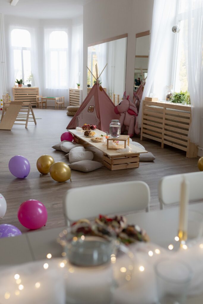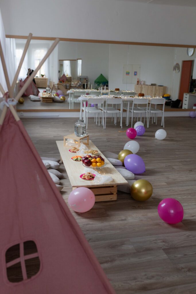 Aktivity chystám ve vedlejším menším sále, tak si můžou děti pohrát a zároveň hlavní místnost zůstává čistá pro pohodlnější hraní a další aktivity na vaší oslavě.